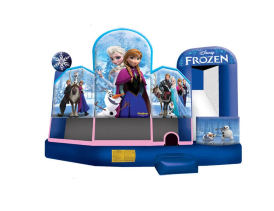Don't be left out in the cold, rent our Disney Frozen Combo for your next event! Elsa, Anna, Kristoff, Hans, Olaf and Sven adore this spacious combo. This combo includes basketball hoop, ladder, obstacle pop up, bounce area and slide.Introducing the Frozen Disney Character Bounce House Combo with Slide - the ultimate addition to your next party or event! This bounce house features all of your favorite characters from the hit movie, including Elsa, Anna, Kristoff, Hans, Olaf, and Sven. This combo unit is perfect for kids of all ages, and will provide hours of fun and entertainment. The bounce house includes a spacious jumping area, obstacle logs, and a fun slide that will have kids sliding and laughing all day long. The Frozen Disney Character Bounce House Combo with Slide is made from high-quality materials and is built to last. It is easy to set up and take down, and can be used both indoors and outdoors. Whether you're hosting a birthday party, school event, or family gathering, the Frozen Disney Character Bounce House Combo with Slide is sure to be a hit with kids and parents alike. Don't miss out on the opportunity to make your next event unforgettable - order your Frozen bounce house today!