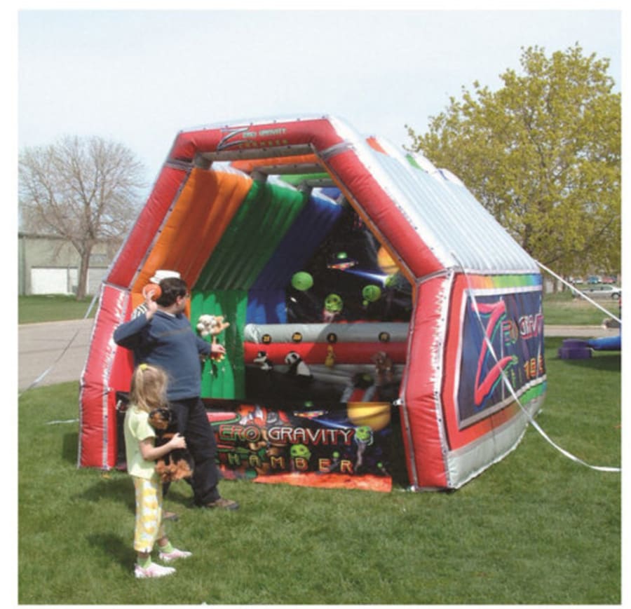 The Zero Gravity Chamber features six floating balls, asteroids, Martians, or floating heads for what appears to be magic (but is actually six support columns of blowing air). You must take the balls out of their zero gravity, where you participate by shooting at the target to be able to collapse the floating balls