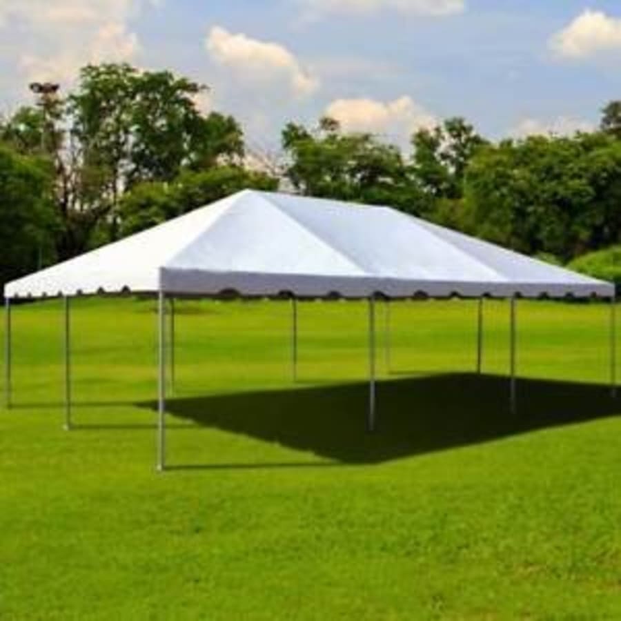 Our 20 x 30 full frame tent is perfect for those large parties. Our frame tents are the best in the business, NO ROPES, NO WIRES, NO POLES in between. They are adjustable from a 6 foot to 8 foot head height and are open and clear on the inside. This tent package easily accommodates up to 60 guests. Installation on grass on your own private property is preferred. Sidewalls are rented separately