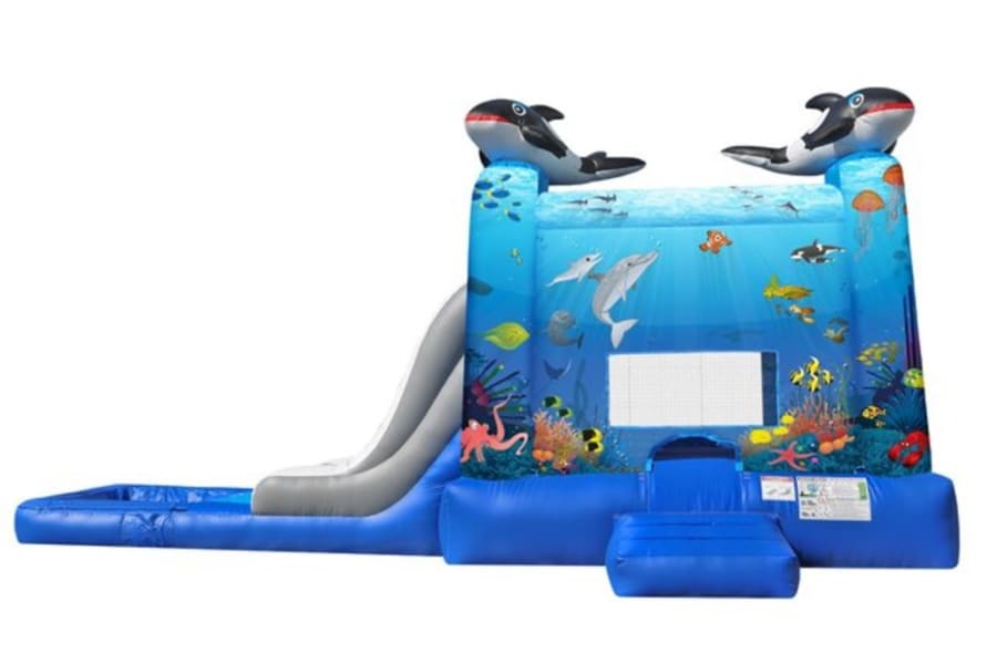 Get ready for maximum fun in the sun with our spectacular "Ocean of Whales" Inflatable Water Combo, featuring an exciting basketball hoop! At Hickory Mega Parties, we know how to make your events unforgettable, and this attraction is the perfect combination of aquatic adventure and sporting challenge. Spacious Jumping Area (Bounce House): The jumping area allows kids to bounce and release energy, adding even more fun to the adventure. NEW! Integrated Basketball Hoop: Shoot some shots and score dunks while enjoying the water! Our strategically placed inflatable basketball hoop adds a fun and competitive element for both boys and girls. Refreshing Landing Pool: The large pool at the base of the slide is ideal for cooling off, splashing around, and enjoying safe play. Perfect for Any Water Celebration: