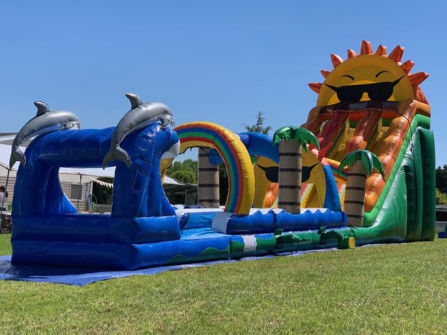 You can create your family summer party with friends or for any occasion with Paradise Sunshine Combo with this extension of slides, making your experience more fun where everyone will be impressed this inflatable can be used from children to adults.